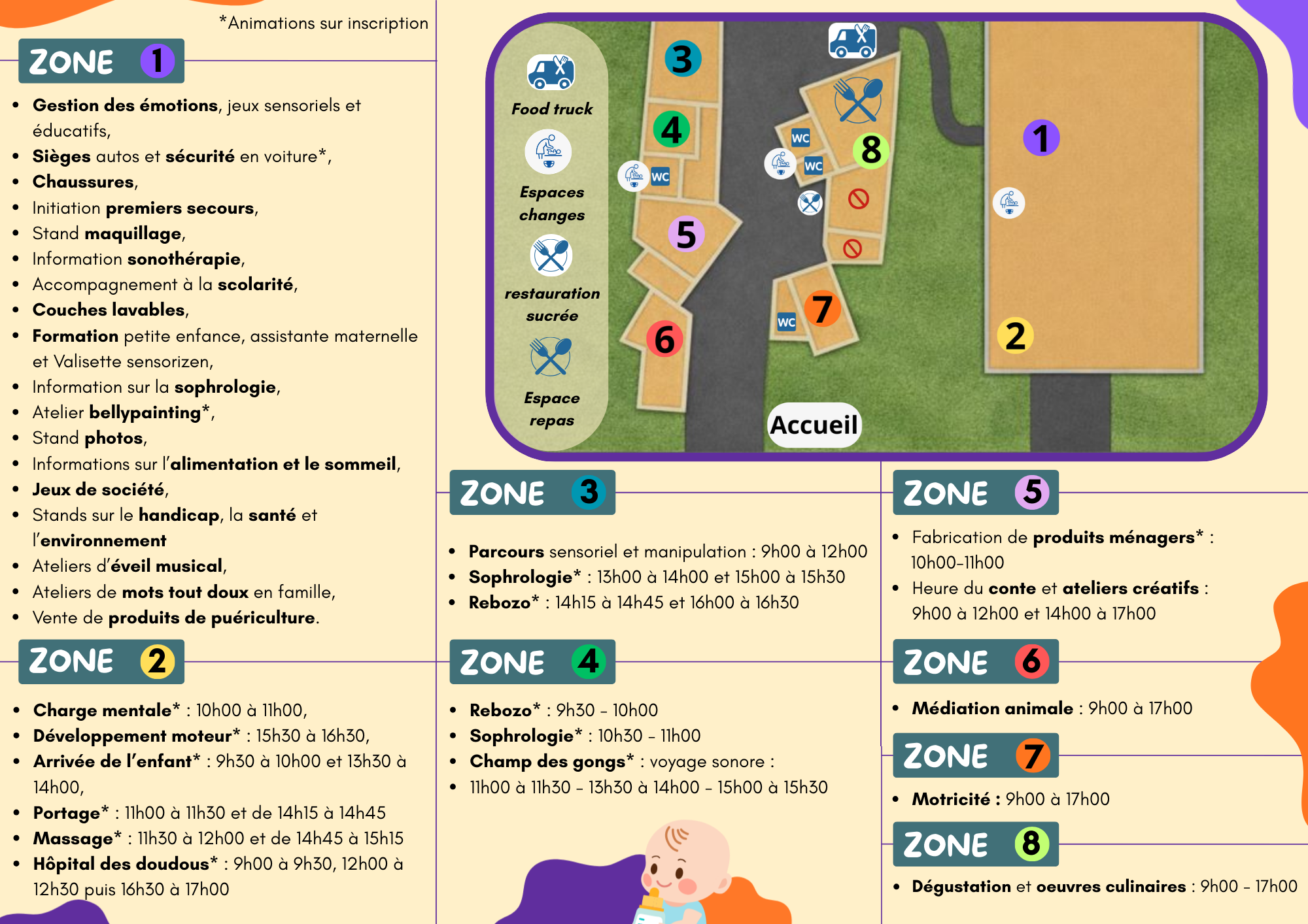Tout au long de la journée, des conférences sont proposées aux parents, offrant des espaces d’écoute et d’échange sur des thématiques spécifiques telles que : la charge mentale, le handicap, les écrans, et bien d’autres.